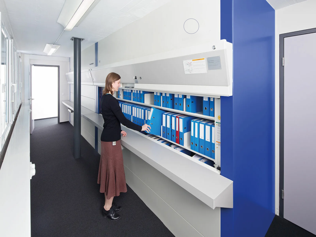 Минималдуу ээлеген аянт менен максималдуу сактоо көлөмү. Каттоо конфигурациясынын бардык түрлөрү, байлоочу/илинген папкалар, үйүлгөн же вертикалдуу орнотулган байлоочу папкалар үчүн идеалдуу келет. Система иштетүү коопсуздугун жана коопсуз сактоону камсыз кылат. Ар кандай чөйрөгө эң ылайыктуу RAL түстөрүнүн кеңири диапазону. Электрондук документти кагаз түрүндөгү документ менен байланыштырган документ башкаруу программасы менен толукталышы мүмкүн.